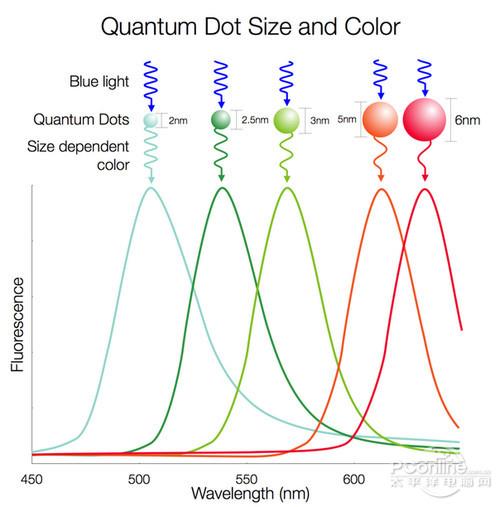 簡(jiǎn)單通俗的說,量子點(diǎn)的光電性質(zhì)與以往的發(fā)光顯示顆粒大不一樣,量子點(diǎn)因?yàn)轭w粒非常小,以納米為單位,導(dǎo)致量子點(diǎn)的顯示顏色是以改變顆粒的大小形狀而進(jìn)行改變,也正因?yàn)槿绱?,理論上來講,量子點(diǎn)顯示的色譜更具有連續(xù)性,成本也會(huì)更低。