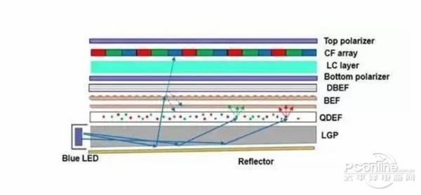 通俗點(diǎn)說,目前的量子點(diǎn)顯示器就是在VA面板中加了一張膜,也就是上圖中的那張QDEF膜。