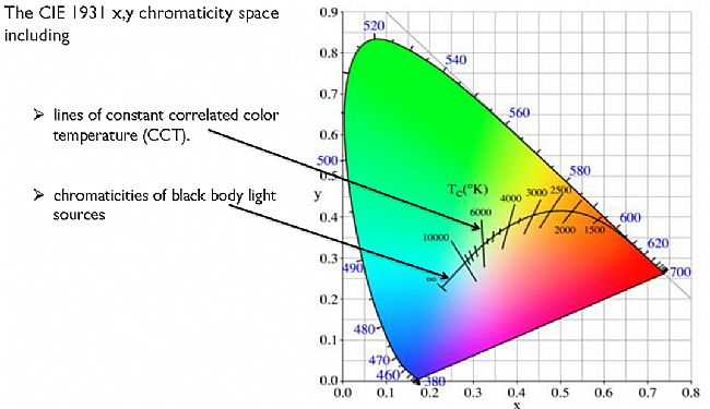 我們現(xiàn)在描述一個(gè)光源是經(jīng)常是使用相關(guān)色溫(CCT),CCT定義為光源的色度坐標(biāo)靠近于黑體的軌跡。